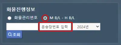 • 화물진행정보에서 M B/L - H B/L 선택하기