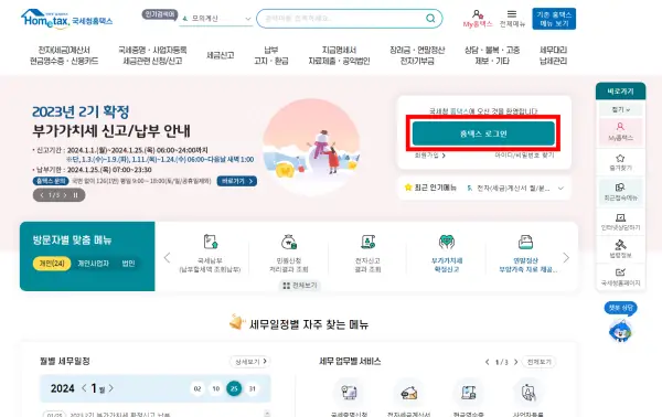 로그인은 필수겠죠? 본인 인증을 할 수 있는 편한방법으로 홈택스에 로그인해 줍니다.